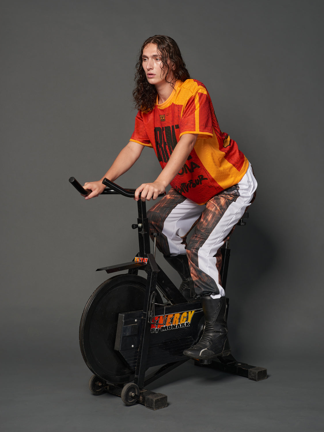 Sublimation trompe l'oeil print on remnant white sport polyester coolmesh.